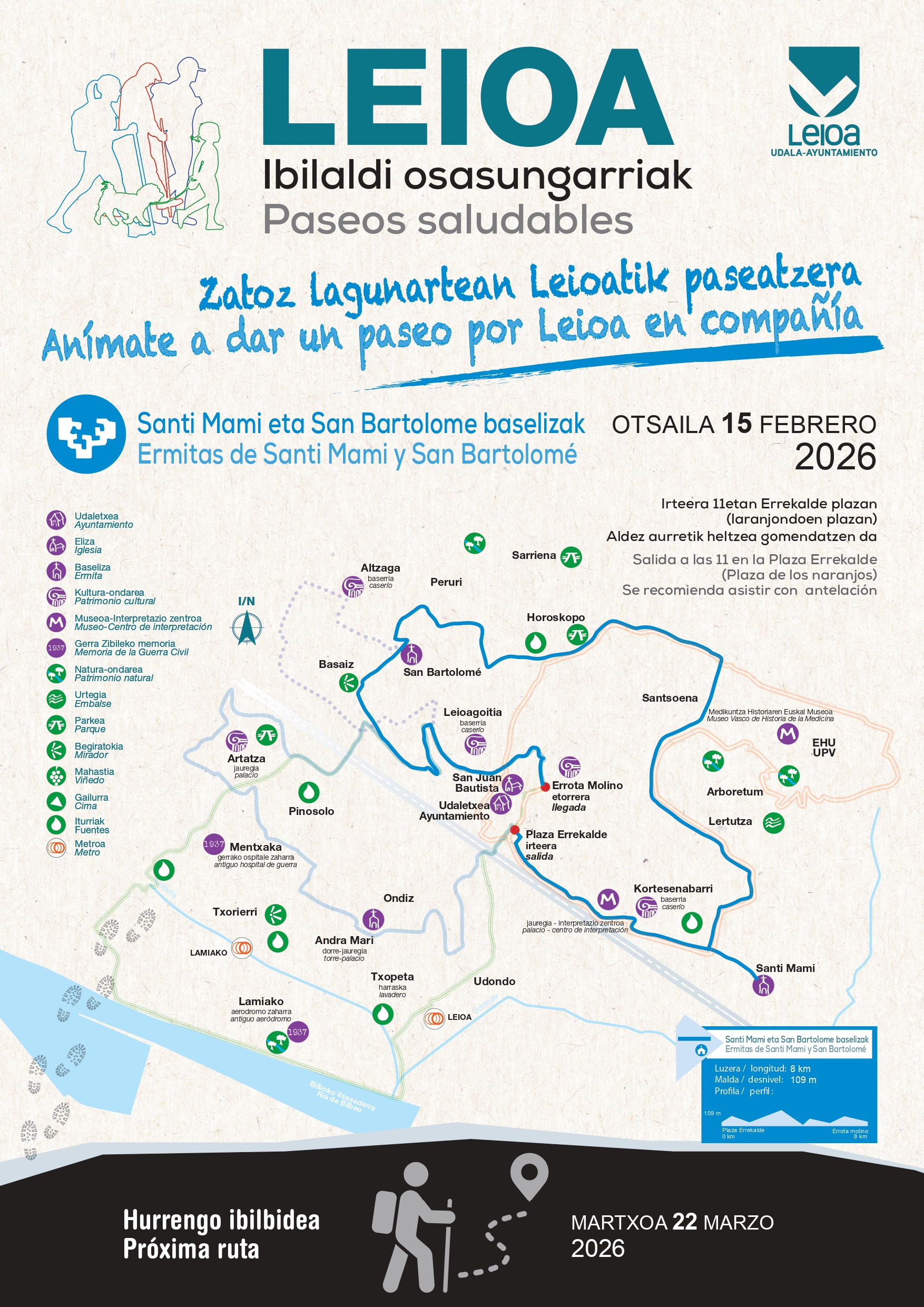 Santimami eta San Bartolome ermitetara ibilaldi gidatua, jarduera fisikoa, ongizatea eta ingurune naturalaz gozatzea helburu.